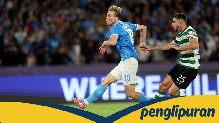 Napoli memetik kemenangan 2-1 atas Sporting CP di Liga Champions. Rasmus Hojlund memborong dua gol Napoli di laga ini.