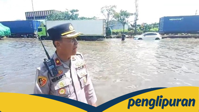 Jalur Pantura Jalan Raya Kaligawe, Kecamatan Genuk, Kota Semarang siang ini masih tergenang air. Ketinggian air mencapai lebih dari 50 sentimeter.
